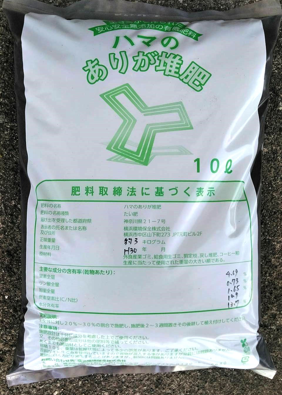 また、この「ハマのありが堆肥」は通常の堆肥よりも匂いが少ないので隣家を気にせず使えるのが、とてもありがたいです。